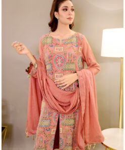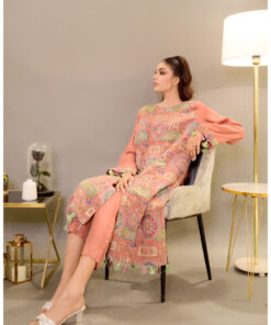 Designed on a soft blush base, this outfit features delicate prints and intricate detailing that elevate its feminine appeal. The breathable fabric ensures comfort, while the tailored finish adds structure and sophistication.